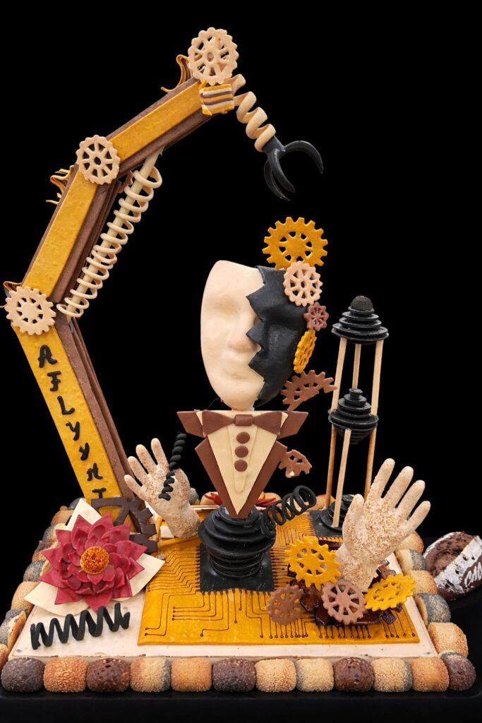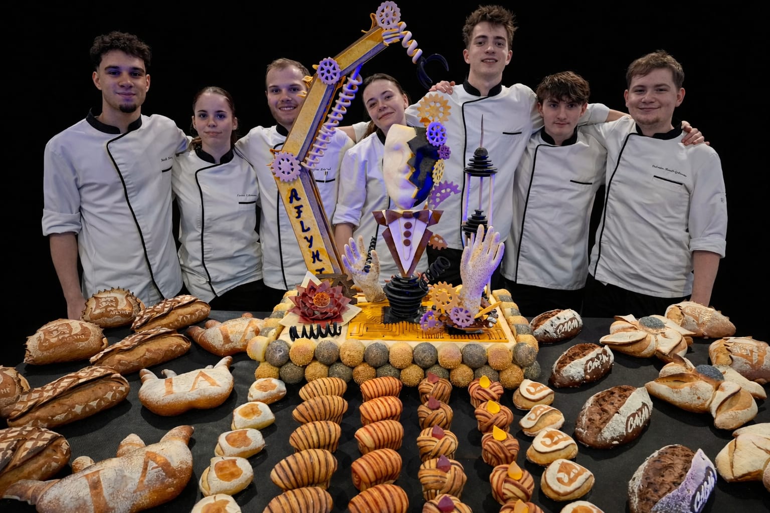 10 sortes de pains, de nombreuses formes créatives et pour mettre en valeur l’ensemble une pièce artistique sur le thème de l’intelligence artificielle.