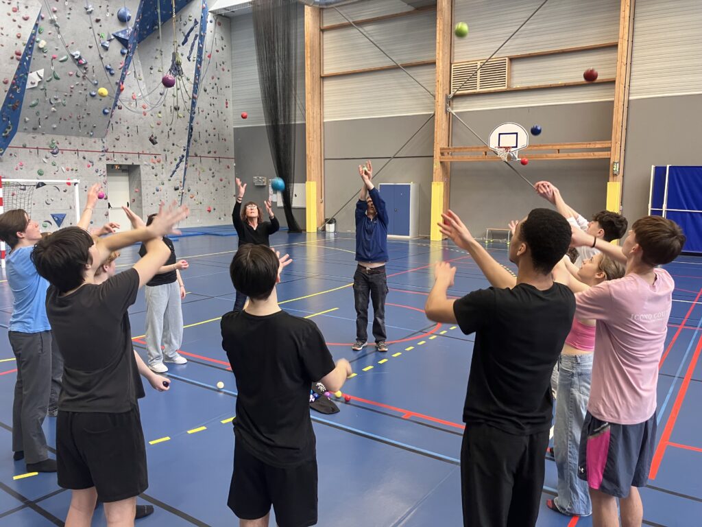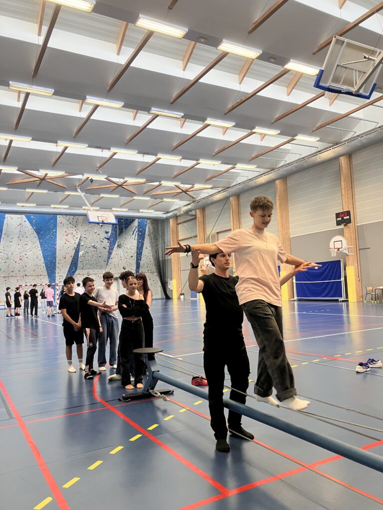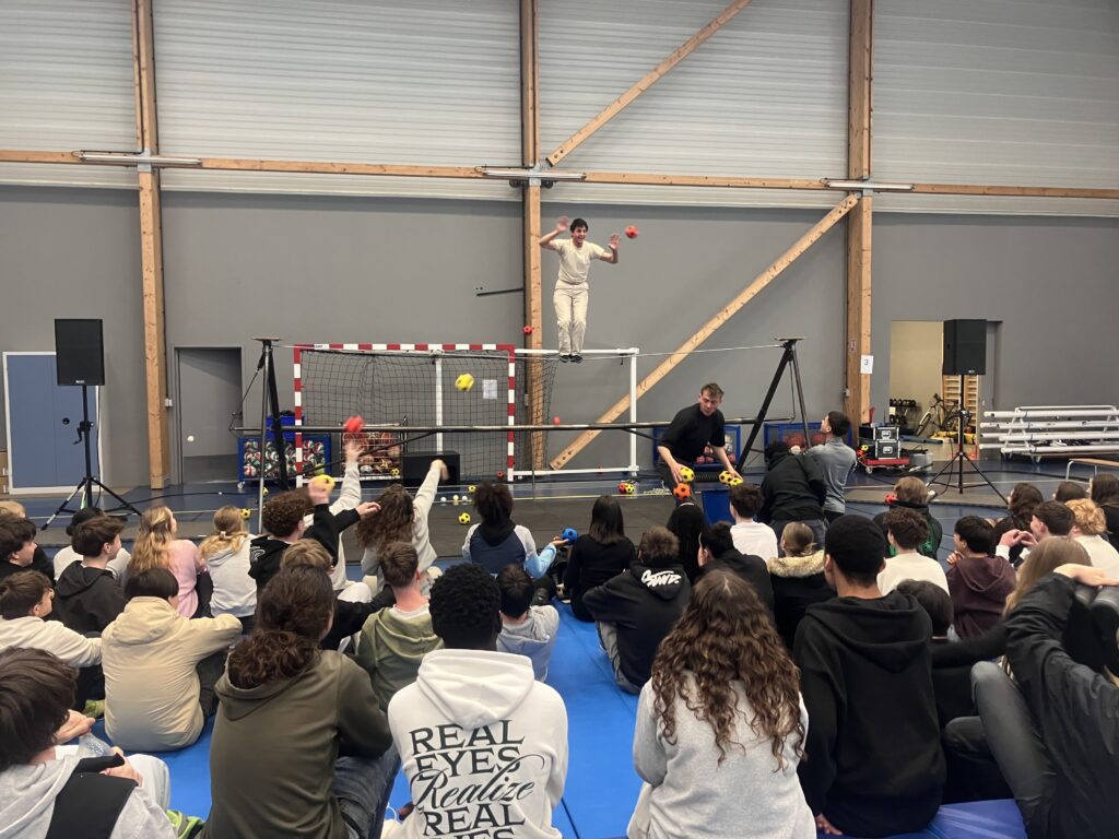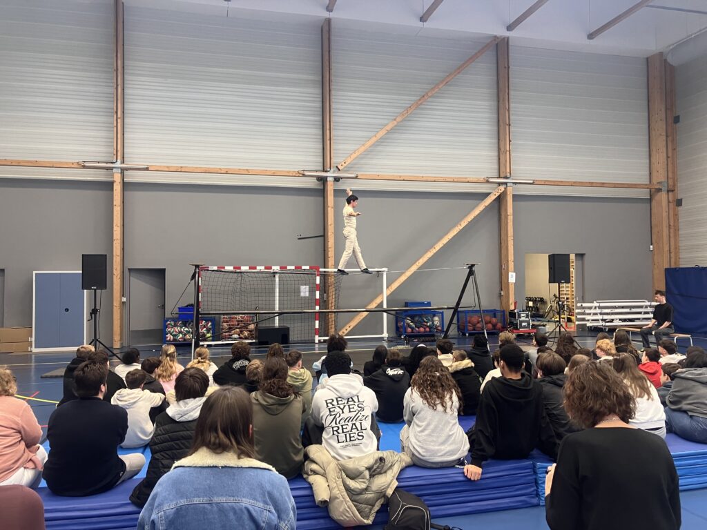 Ils ont assisté à un spectacle au gymnase du lycée puis avec la compagnie La Main de l’Homme, les élèves ont participé à des ateliers de pratiques artistiques autour du cirque