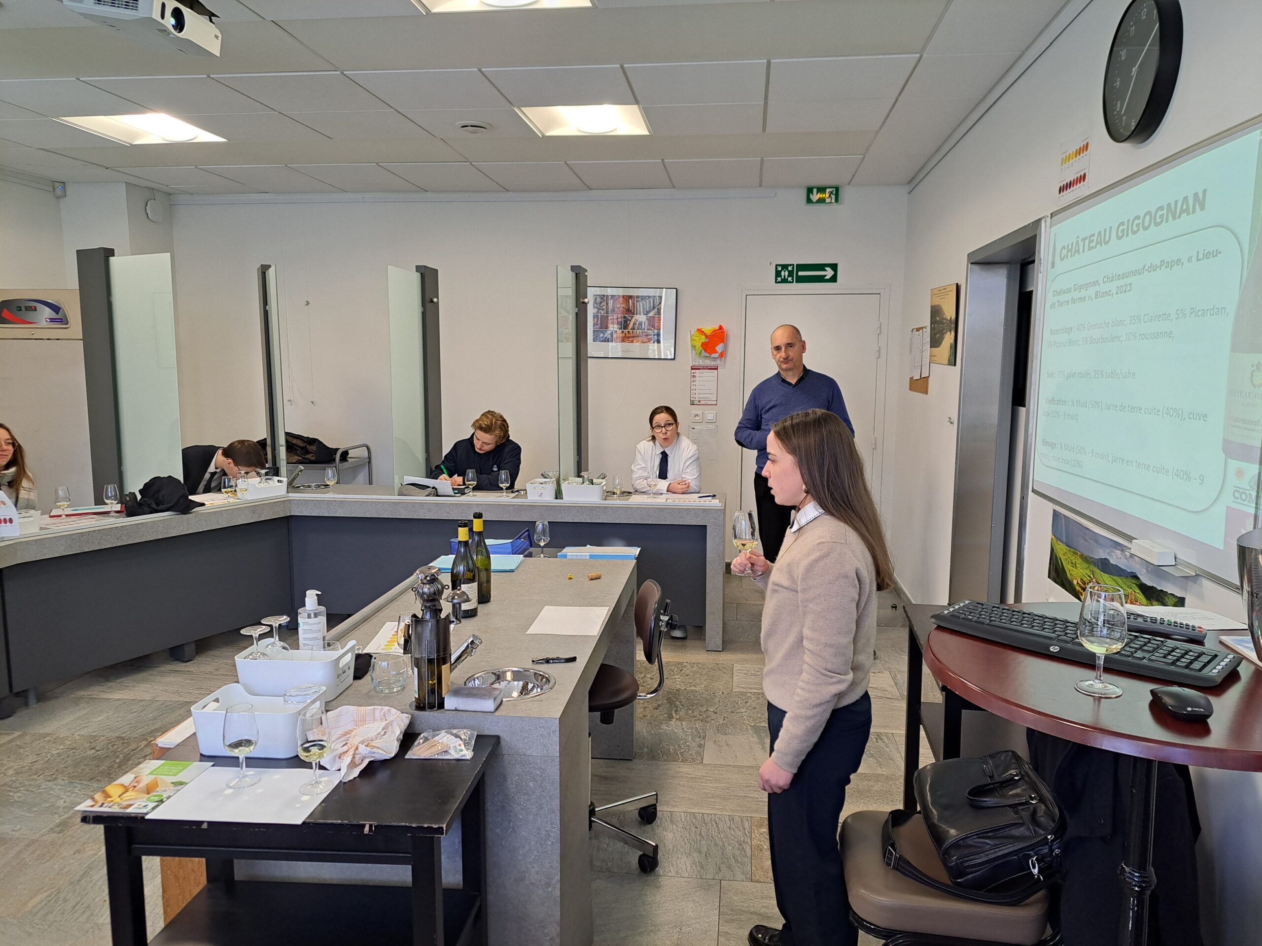 La classe de spécialisation en sommellerie a eu le plaisir de rencontrer Madame Hortense Hallereau, ambassadrice du fromage Comté, ainsi que Monsieur Michel Blanc, ambassadeur des vins de Châteauneuf-du-Pape.